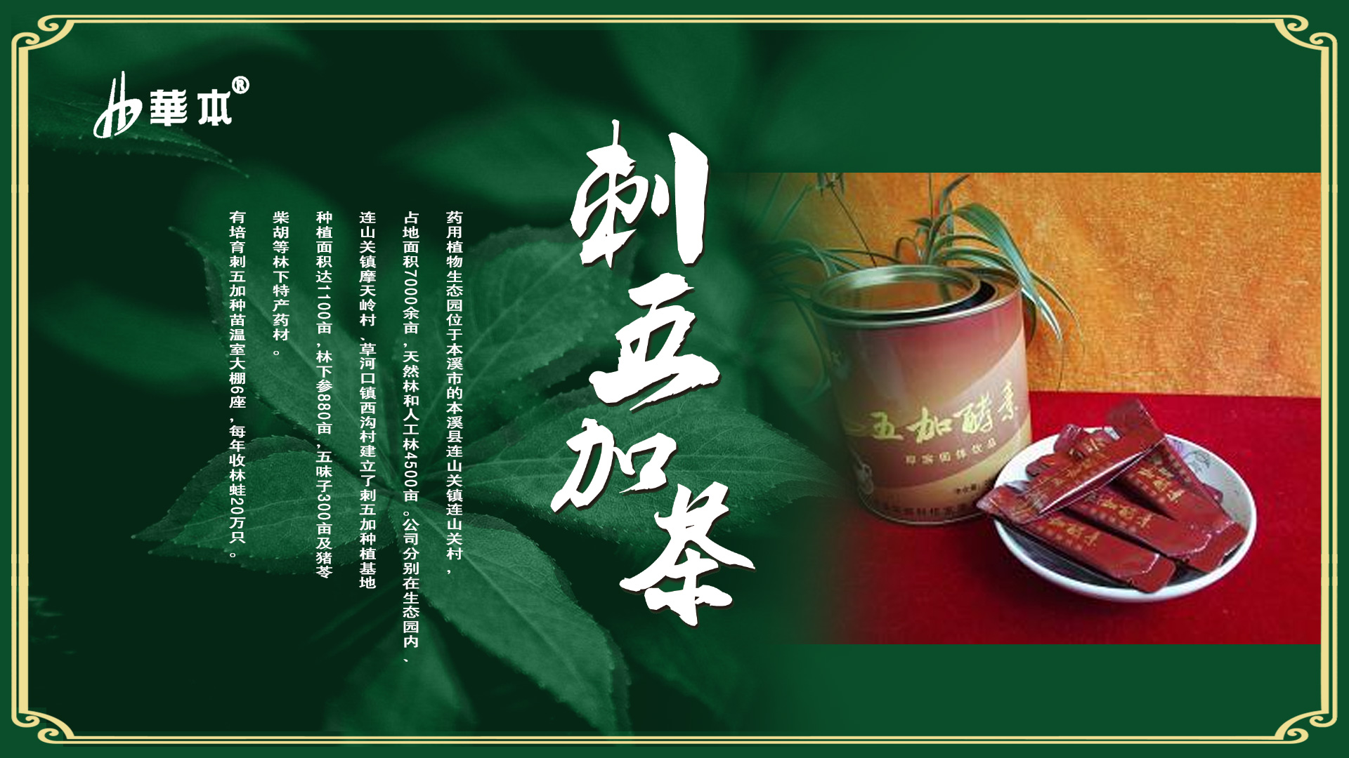 本溪滿(mǎn)族自治縣依托本溪華都科技發(fā)展有限公司的基地規(guī)模、技術(shù)優(yōu)勢(shì)、生產(chǎn)能力,帶動(dòng)了周邊農(nóng)戶(hù)和合作社種植刺五加以及形成的產(chǎn)業(yè),2012年8月被國(guó)家林業(yè)產(chǎn)業(yè)協(xié)會(huì)批準(zhǔn)為全國(guó)第一個(gè)“中國(guó)刺五加之鄉(xiāng)”,同年8月連山關(guān)地區(qū)刺五加由國(guó)家質(zhì)檢總局批準(zhǔn)為“國(guó)家地理標(biāo)志”。刺五加特色產(chǎn)業(yè)列入“一縣一業(yè)”示范縣主導(dǎo)產(chǎn)業(yè)。